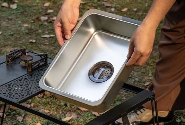 CAMPINGMOON حوض مطبخ من الستانلس ستيل خفيف الوزن قابل للحمل للتخييم IGT طاولة(CK-26)